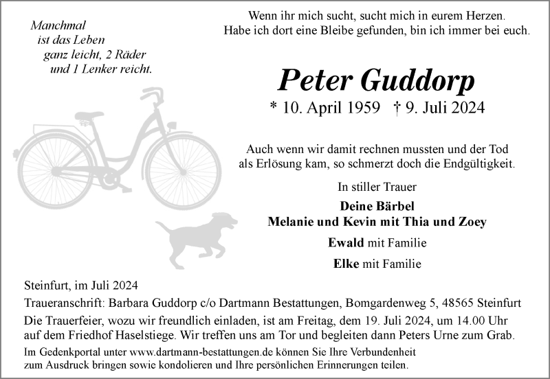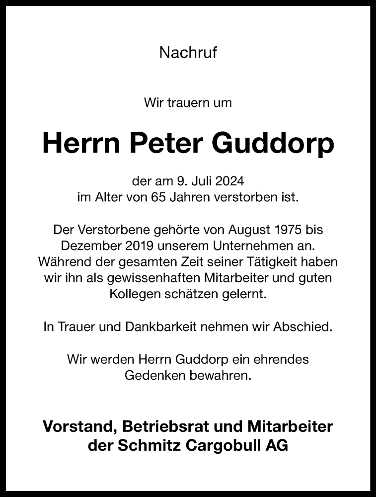 Hier finden Sie alle Traueranzeigen aus der Zeitung, die bisher für Peter Guddorp erschienen sind. Weitere Traueranzeigen, die in der Zeitung erscheinen, werden hier ebenfalls aufgelistet