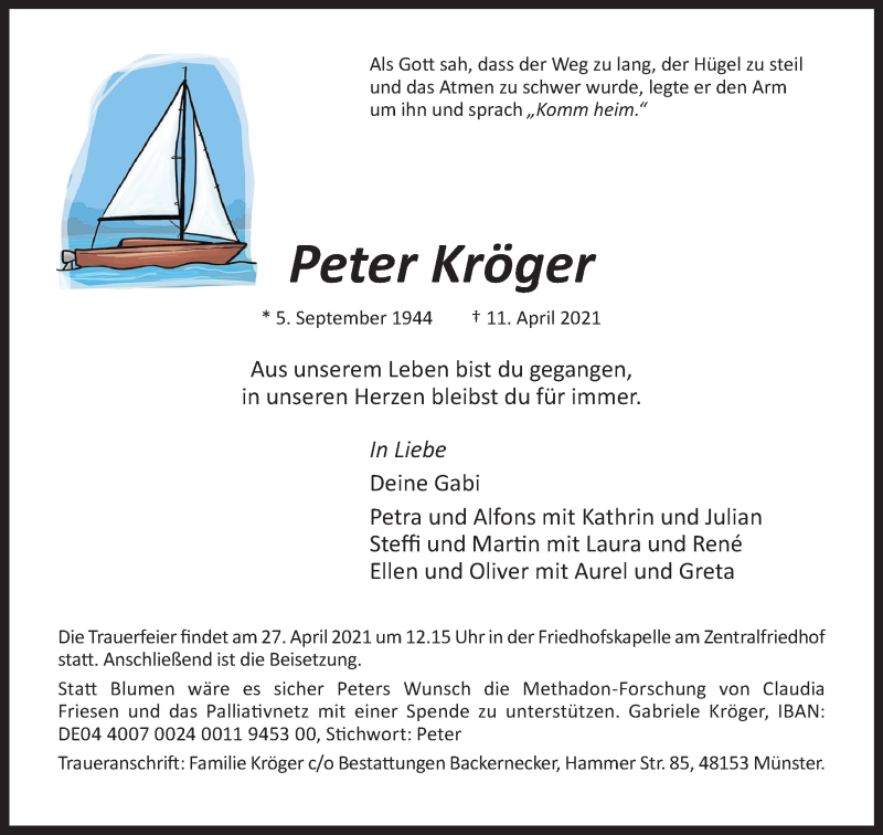 Hier finden Sie alle Traueranzeigen aus der Zeitung, die bisher für Peter Kröger erschienen sind. Weitere Traueranzeigen, die in der Zeitung erscheinen, werden hier ebenfalls aufgelistet
