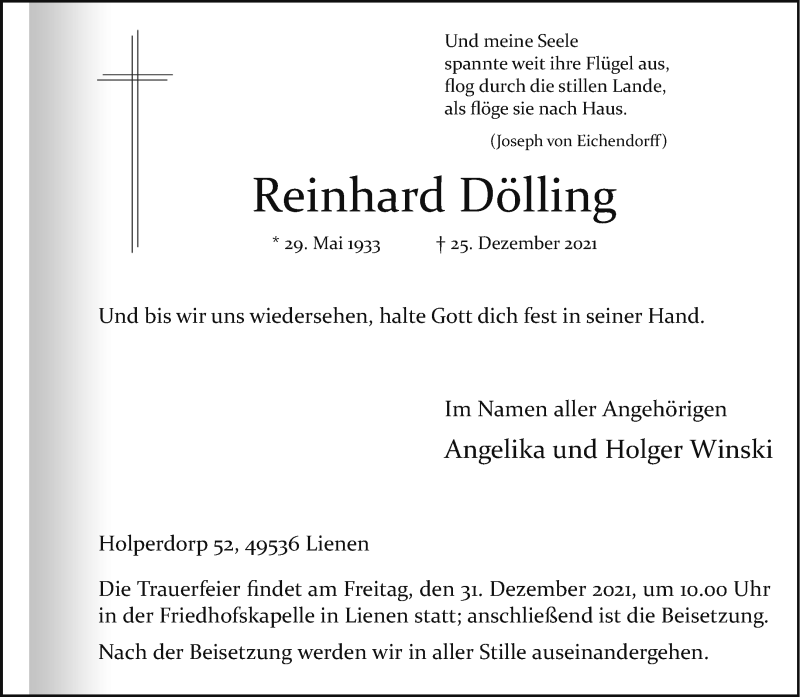 Hier finden Sie alle Traueranzeigen aus der Zeitung, die bisher für Reinhard Dölling erschienen sind. Weitere Traueranzeigen, die in der Zeitung erscheinen, werden hier ebenfalls aufgelistet