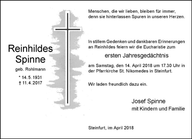 Hier finden Sie alle Traueranzeigen aus der Zeitung, die bisher für Reinhildes Spinne erschienen sind. Weitere Traueranzeigen, die in der Zeitung erscheinen, werden hier ebenfalls aufgelistet