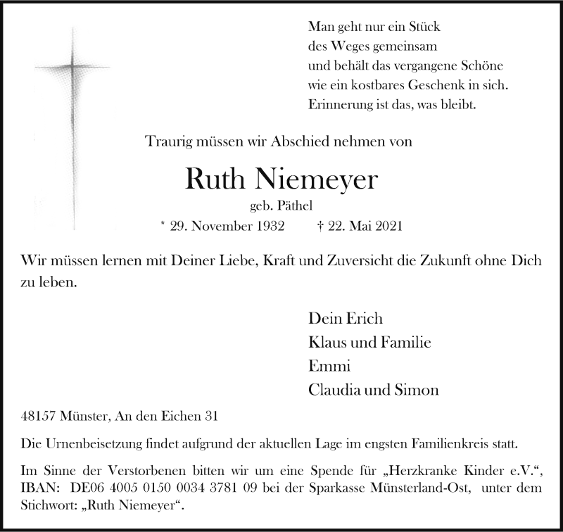 Hier finden Sie alle Traueranzeigen aus der Zeitung, die bisher für Ruth Niemeyer erschienen sind. Weitere Traueranzeigen, die in der Zeitung erscheinen, werden hier ebenfalls aufgelistet