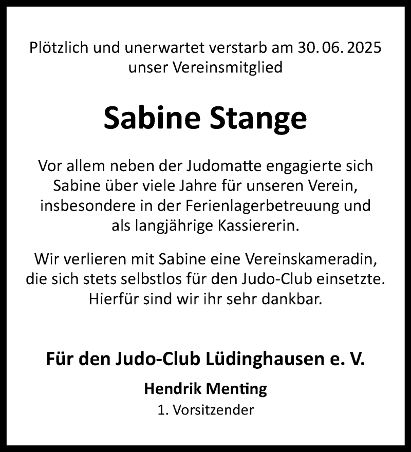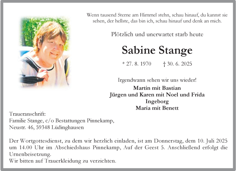 Hier finden Sie alle Traueranzeigen aus der Zeitung, die bisher für Sabine Stange erschienen sind. Weitere Traueranzeigen, die in der Zeitung erscheinen, werden hier ebenfalls aufgelistet