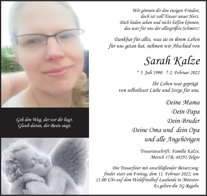 Hier finden Sie alle Traueranzeigen aus der Zeitung, die bisher für Sarah Kalze erschienen sind. Weitere Traueranzeigen, die in der Zeitung erscheinen, werden hier ebenfalls aufgelistet