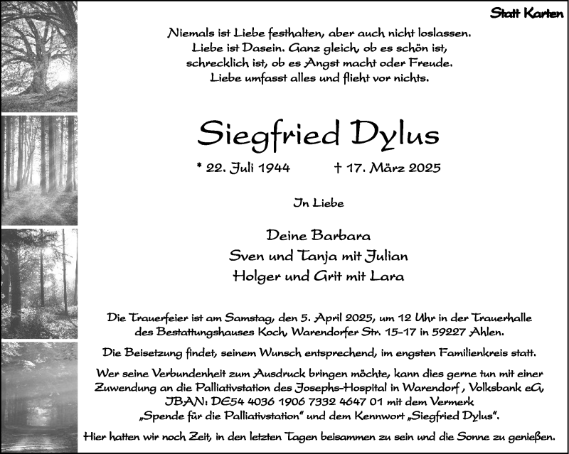 Hier finden Sie alle Traueranzeigen aus der Zeitung, die bisher für Siegfried Dylus erschienen sind. Weitere Traueranzeigen, die in der Zeitung erscheinen, werden hier ebenfalls aufgelistet