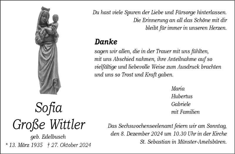 Hier finden Sie alle Traueranzeigen aus der Zeitung, die bisher für Sofia Große Wittler erschienen sind. Weitere Traueranzeigen, die in der Zeitung erscheinen, werden hier ebenfalls aufgelistet