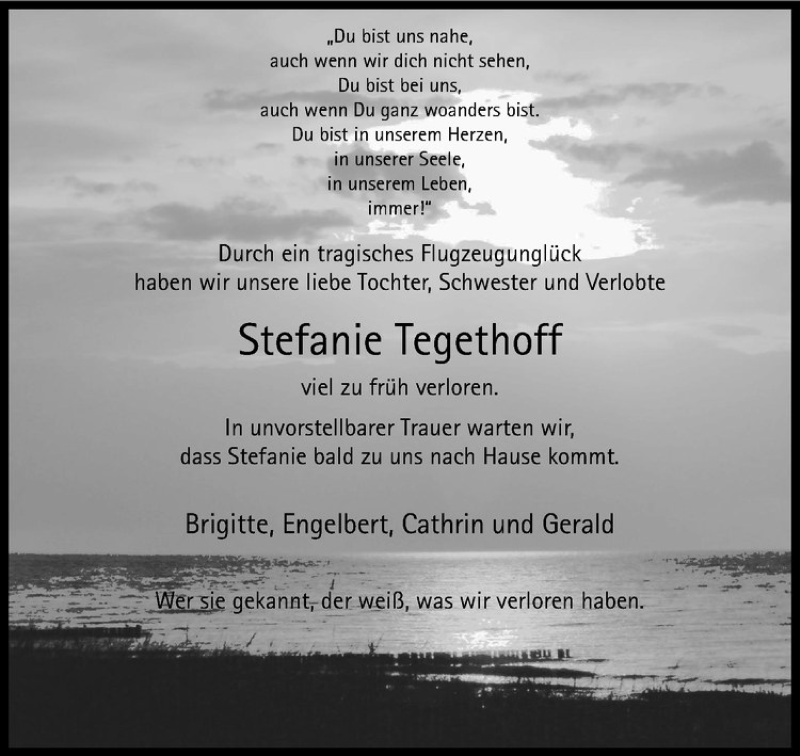 Hier finden Sie alle Traueranzeigen aus der Zeitung, die bisher für Stefanie Tegethoff erschienen sind. Weitere Traueranzeigen, die in der Zeitung erscheinen, werden hier ebenfalls aufgelistet