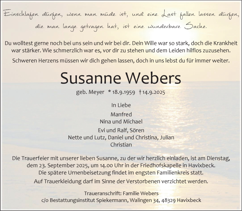 Hier finden Sie alle Traueranzeigen aus der Zeitung, die bisher für Susanne Webers erschienen sind. Weitere Traueranzeigen, die in der Zeitung erscheinen, werden hier ebenfalls aufgelistet