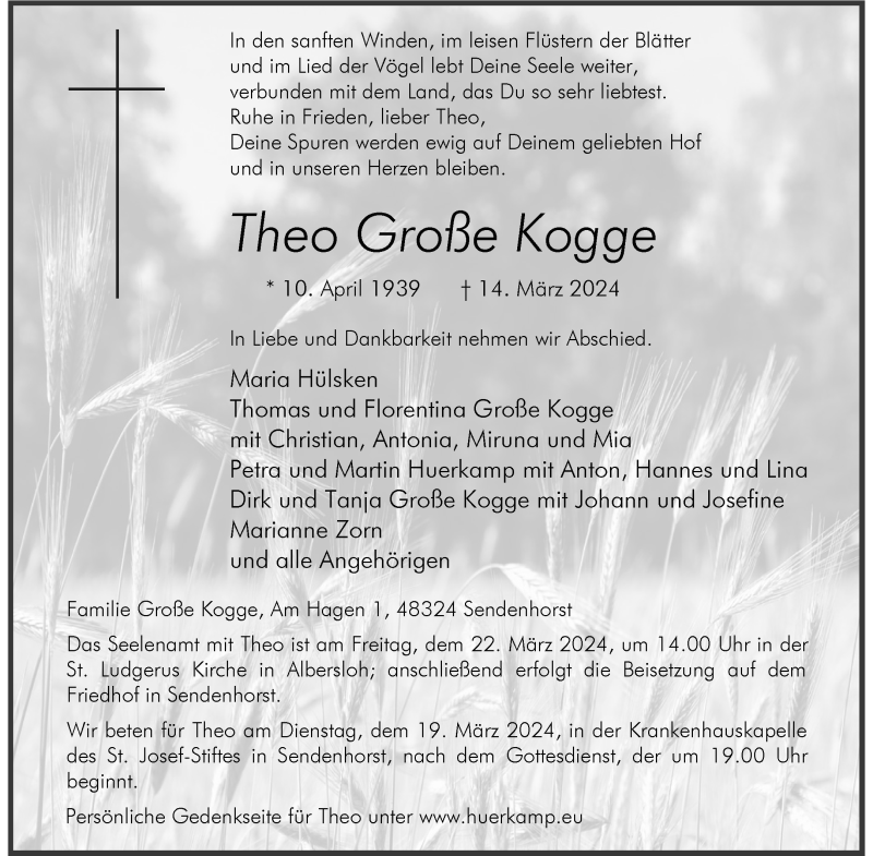 Hier finden Sie alle Traueranzeigen aus der Zeitung, die bisher für Theo Große Kogge erschienen sind. Weitere Traueranzeigen, die in der Zeitung erscheinen, werden hier ebenfalls aufgelistet