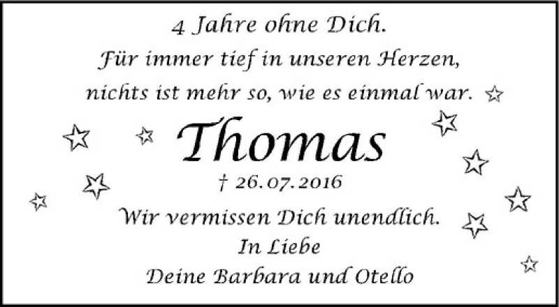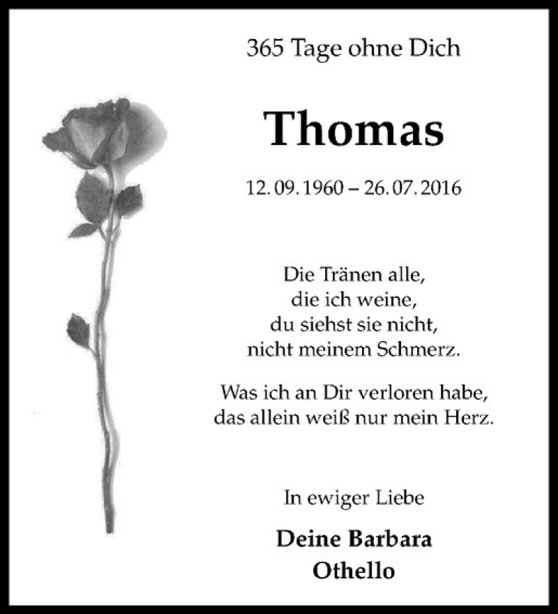 Hier finden Sie alle Traueranzeigen aus der Zeitung, die bisher für Thomas Scheffler erschienen sind. Weitere Traueranzeigen, die in der Zeitung erscheinen, werden hier ebenfalls aufgelistet