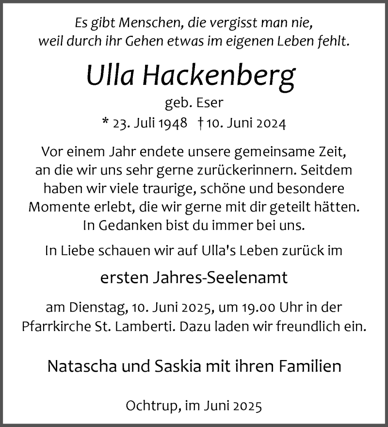 Hier finden Sie alle Traueranzeigen aus der Zeitung, die bisher für Ulla Hackenberg erschienen sind. Weitere Traueranzeigen, die in der Zeitung erscheinen, werden hier ebenfalls aufgelistet