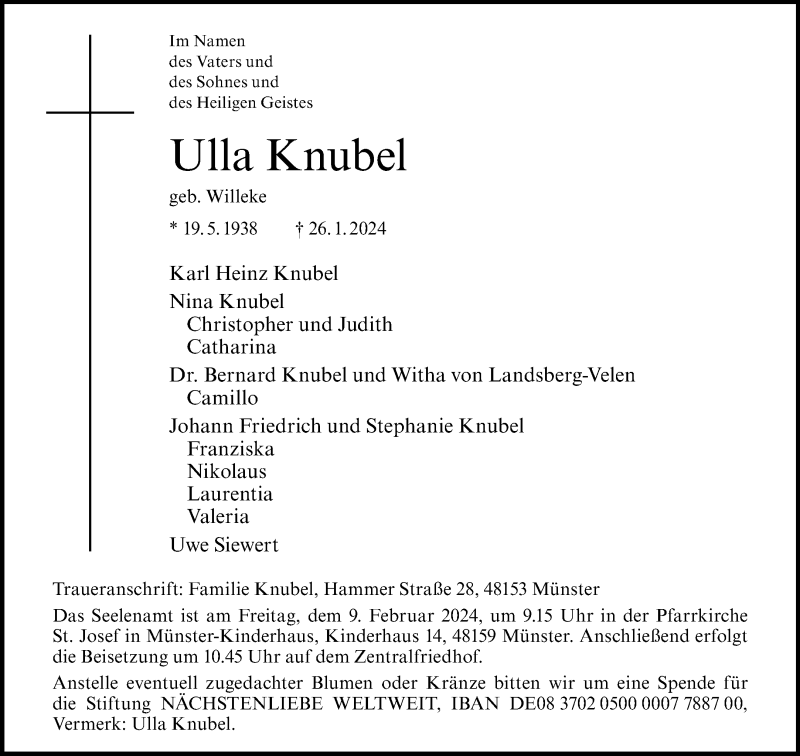 Hier finden Sie alle Traueranzeigen aus der Zeitung, die bisher für Ulla Knubel erschienen sind. Weitere Traueranzeigen, die in der Zeitung erscheinen, werden hier ebenfalls aufgelistet