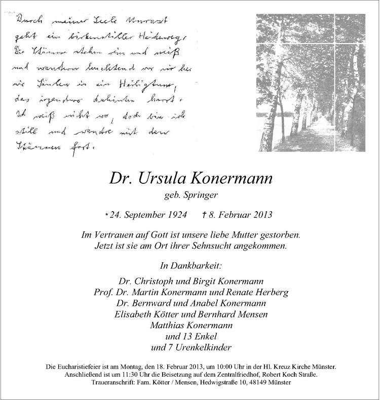 Hier finden Sie alle Traueranzeigen aus der Zeitung, die bisher für Ursula Konermann erschienen sind. Weitere Traueranzeigen, die in der Zeitung erscheinen, werden hier ebenfalls aufgelistet