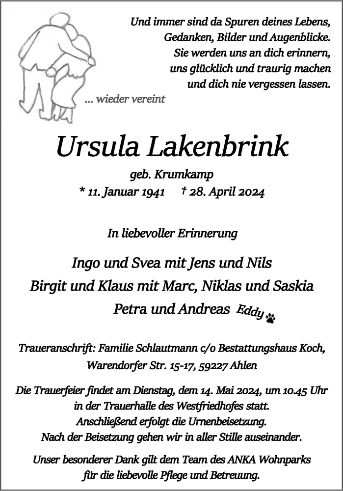 Hier finden Sie alle Traueranzeigen aus der Zeitung, die bisher für Ursula Lakenbrink erschienen sind. Weitere Traueranzeigen, die in der Zeitung erscheinen, werden hier ebenfalls aufgelistet