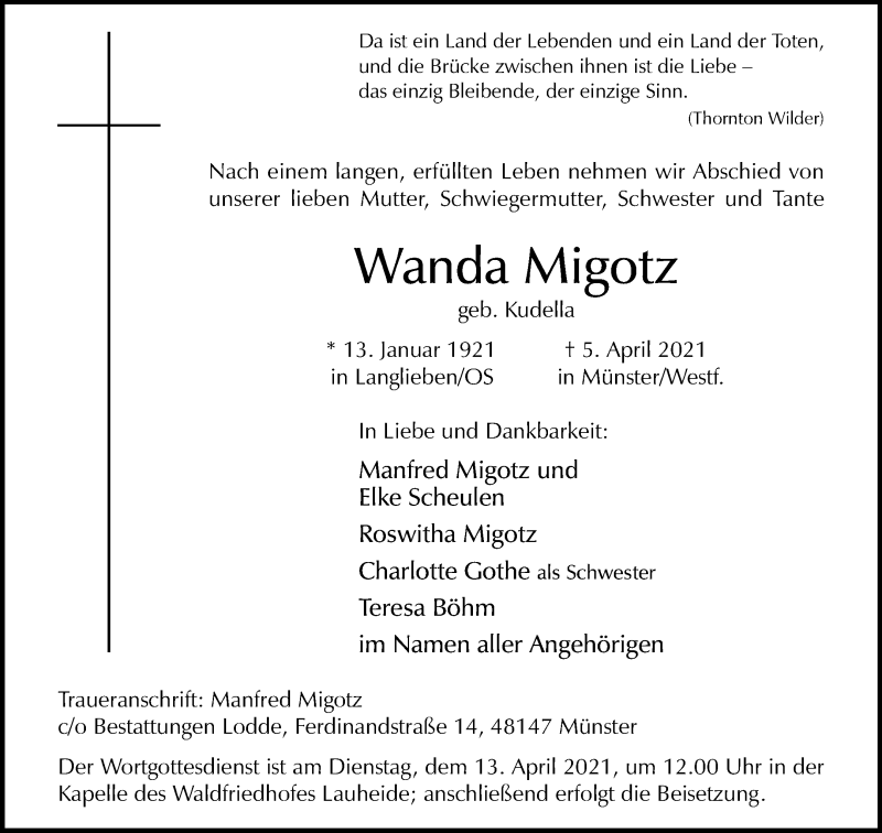 Hier finden Sie alle Traueranzeigen aus der Zeitung, die bisher für Wanda Migotz erschienen sind. Weitere Traueranzeigen, die in der Zeitung erscheinen, werden hier ebenfalls aufgelistet