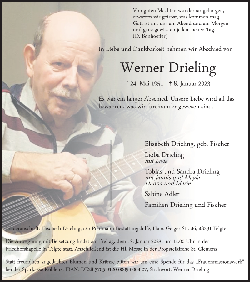 Hier finden Sie alle Traueranzeigen aus der Zeitung, die bisher für Werner Drieling erschienen sind. Weitere Traueranzeigen, die in der Zeitung erscheinen, werden hier ebenfalls aufgelistet
