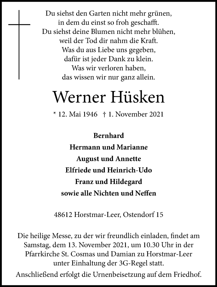 Hier finden Sie alle Traueranzeigen aus der Zeitung, die bisher für Werner Hüsken erschienen sind. Weitere Traueranzeigen, die in der Zeitung erscheinen, werden hier ebenfalls aufgelistet