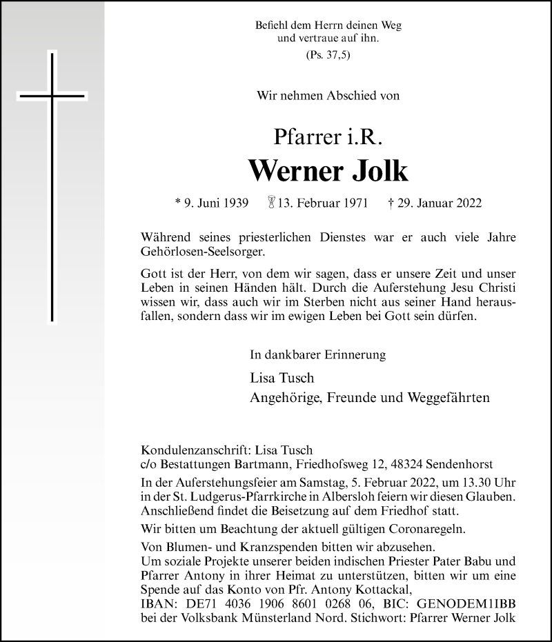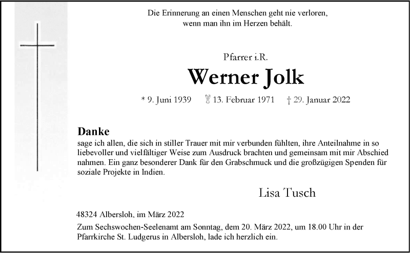 Hier finden Sie alle Traueranzeigen aus der Zeitung, die bisher für Werner Jolk erschienen sind. Weitere Traueranzeigen, die in der Zeitung erscheinen, werden hier ebenfalls aufgelistet