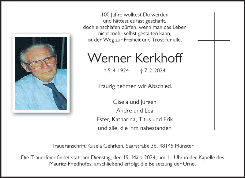 Hier finden Sie alle Traueranzeigen aus der Zeitung, die bisher für Werner Kerkhoff erschienen sind. Weitere Traueranzeigen, die in der Zeitung erscheinen, werden hier ebenfalls aufgelistet