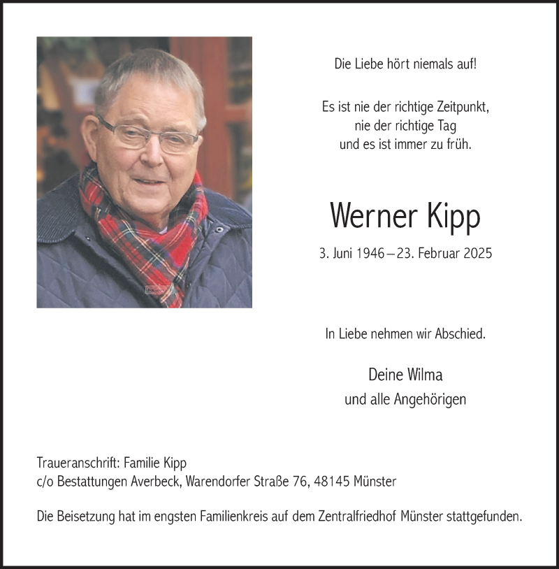 Hier finden Sie alle Traueranzeigen aus der Zeitung, die bisher für Werner Kipp erschienen sind. Weitere Traueranzeigen, die in der Zeitung erscheinen, werden hier ebenfalls aufgelistet