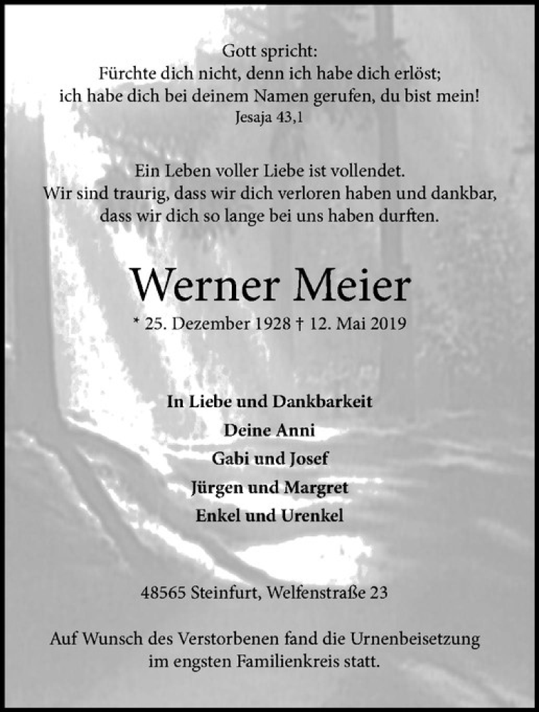 Hier finden Sie alle Traueranzeigen aus der Zeitung, die bisher für Werner Meier erschienen sind. Weitere Traueranzeigen, die in der Zeitung erscheinen, werden hier ebenfalls aufgelistet