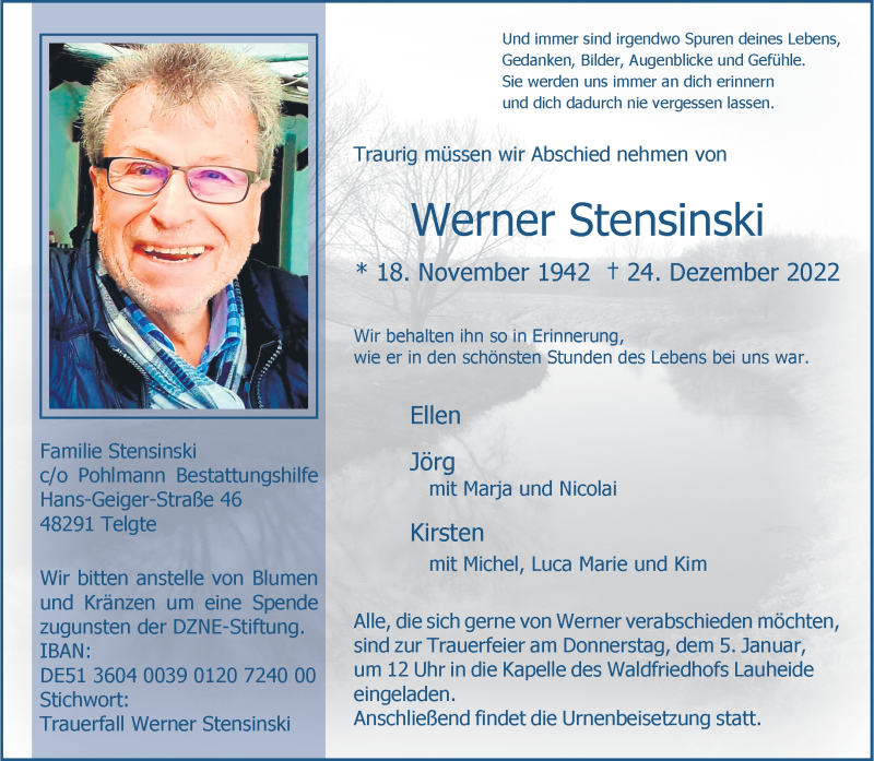 Hier finden Sie alle Traueranzeigen aus der Zeitung, die bisher für Werner Stensinski erschienen sind. Weitere Traueranzeigen, die in der Zeitung erscheinen, werden hier ebenfalls aufgelistet