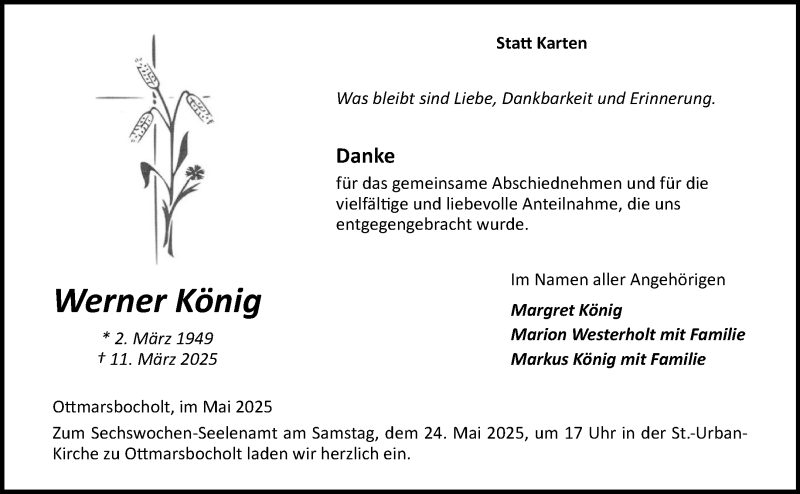 Hier finden Sie alle Traueranzeigen aus der Zeitung, die bisher für Werner König erschienen sind. Weitere Traueranzeigen, die in der Zeitung erscheinen, werden hier ebenfalls aufgelistet