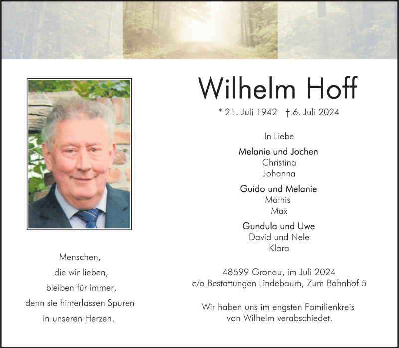 Hier finden Sie alle Traueranzeigen aus der Zeitung, die bisher für Wilhelm Hoff erschienen sind. Weitere Traueranzeigen, die in der Zeitung erscheinen, werden hier ebenfalls aufgelistet