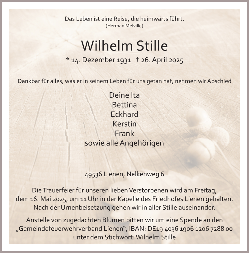 Hier finden Sie alle Traueranzeigen aus der Zeitung, die bisher für Wilhelm Stille erschienen sind. Weitere Traueranzeigen, die in der Zeitung erscheinen, werden hier ebenfalls aufgelistet