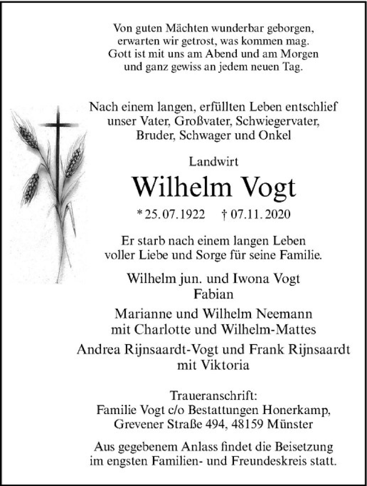 Hier finden Sie alle Traueranzeigen aus der Zeitung, die bisher für Wilhelm Vogt erschienen sind. Weitere Traueranzeigen, die in der Zeitung erscheinen, werden hier ebenfalls aufgelistet