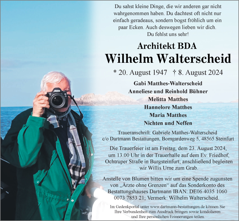 Hier finden Sie alle Traueranzeigen aus der Zeitung, die bisher für Wilhelm Walterscheid erschienen sind. Weitere Traueranzeigen, die in der Zeitung erscheinen, werden hier ebenfalls aufgelistet
