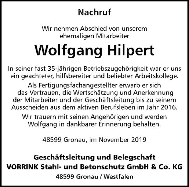 Hier finden Sie alle Traueranzeigen aus der Zeitung, die bisher für Wolfgang Hilpert erschienen sind. Weitere Traueranzeigen, die in der Zeitung erscheinen, werden hier ebenfalls aufgelistet