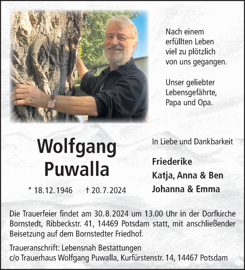 Hier finden Sie alle Traueranzeigen aus der Zeitung, die bisher für Wolfgang Puwalla erschienen sind. Weitere Traueranzeigen, die in der Zeitung erscheinen, werden hier ebenfalls aufgelistet
